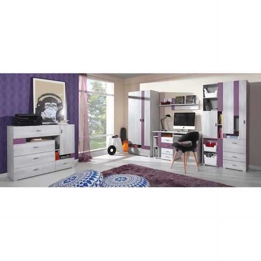 Етажерка за стена Planet PL13 бял мат, дъб и морскосин
