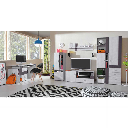 Етажерка за стена Planet PL12 бял мат, дъб и морскосин