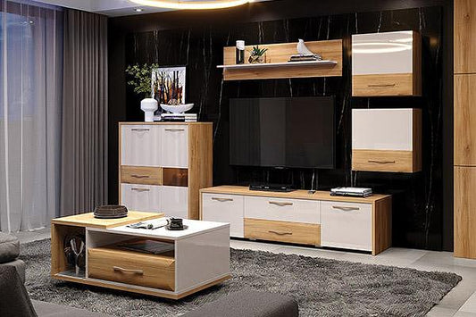 Висок скрин Toledo Typ 42 бял гланц и светъл дъб сан ремо