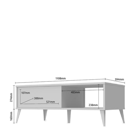 Холна маса Tina 130x70 cm Бяла стъклен плот