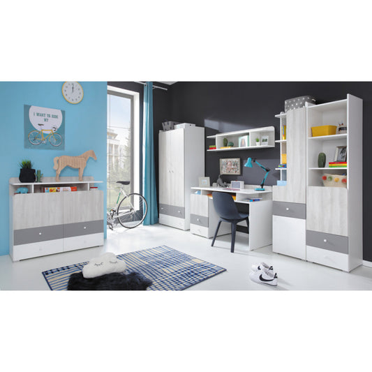 Етажерка за стена Como 11 бял и бял дъб уилтън