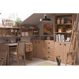 Пътувания, карти, куфари и сувенири от пътешествията са близо до вас? Индианската колекция, поддържана в колониален стил, ще ви зарадва с простотата на формата, подчертана от металните фитинги и дръжки. Мебелите се предлагат в два модерни цветови варианта: оригинален дъб или скандинавски бял боров каньон. Активът на системата е нейният оптимален капацитет, който ще ви помогне да организирате, разделите и поддържате ред сред вашите лични вещи. В колекцията Индиана ще намерите много мебели с различни размери и функции, които можете свободно да комбинирате.